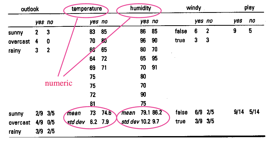 • Standard deviation () for temp for class=yes = 6.2